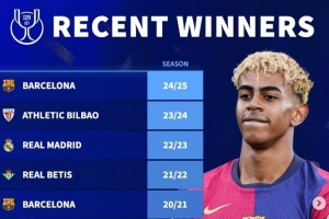 nba直播10月29日讯 《转会市场》统计了近10年国王杯夺冠情况,巴萨5次夺冠居首。