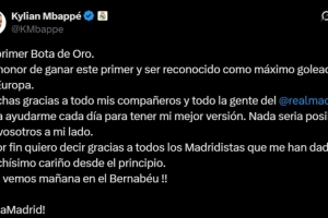 nba直播10月31日讯 不久前,获得欧洲金靴的皇马前锋姆巴佩更新社交媒体,感谢了队友和球迷的支持。