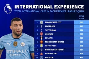 nba直播11月1日讯 德国转会市场统计了英超各队球员为国家队出战的场次,并列出榜单,曼城925场居首,利物浦887场次席。