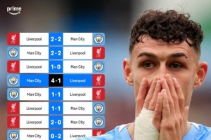 据媒体统计,近8次在英超对阵利物浦,曼城仅取胜1场,具体战绩1胜4平3负。