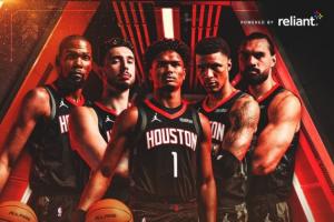 火箭本场比赛首发:阿门-汤普森、杜兰特、小贾巴里-史密斯、申京和史蒂文-亚当斯。