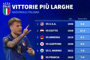 nba直播11月14日讯 北京时间11月17日凌晨,意大利将在世预赛最后一轮比赛中主场对阵挪威,意大利此役需要至少净胜挪威9球,才能直接出线。德国转会市场列出了意大利队史最大比分胜利榜单。