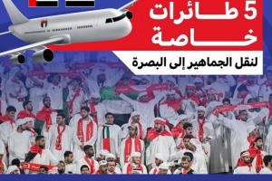 阿联酋足协发布公告,宣布将提供5架专机运送球迷前往巴士拉,报名通道当地时间今日下午4点起通过官方平台开放,名额报满即止。