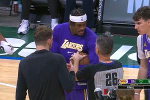 nba直播11月16日讯 湖人客场119-95大胜雄鹿,比赛结束后发生了戏剧性的一幕。