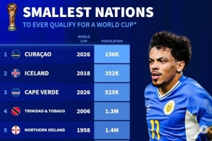 nba直播11月20日讯 世预赛当前仅剩多个附加赛名额待定,库拉索以15.6万人成为二战之后晋级世界杯的人口最少国家,《转会市场》也统计了二战之后晋级世界杯人口最少的国家前十。