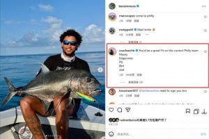 nba直播11月28日讯 近日本·西蒙斯在自己INS评论区点评了网友评论:“你很适合现在的76人,马克西+埃奇库姆+乔治+本西+恩比德。”