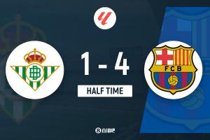nba直播12月7日讯 北京时间1:30,西甲第15轮皇家贝蒂斯vs巴塞罗那,比赛在塞维利亚奥林匹克体育场打响!上半场,安东尼破门帮助贝蒂斯取得领先,但随后费兰·托雷斯2分钟2球将比分反超!佩德里助攻巴德吉再下一城;费兰远射破门完成帽子戏法!半场结束,巴萨暂时4-1领先贝蒂斯。