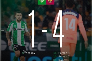 nba直播12月7日讯 本轮西甲焦点战,巴萨上半场4-1反超贝蒂斯,数据统计显示西甲联赛历史仅有4支客队在皇家贝蒂斯主场上半场进球数达到4+: