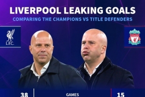 nba直播12月7日讯 英超第15轮比赛,利物浦客场3-3战平利兹联。德国转会市场统计了利物浦上赛季、本赛季的英超丢球数据,并做出对比。