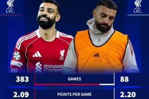 nba直播12月08日讯 在萨拉赫炮轰利物浦将自己当作替罪羊后,德转统计了利物浦在萨拉赫出场以及缺阵的下的战绩对比,在萨拉赫缺阵时,利物浦的场均积分、进球数更高,但丢球数也更多。