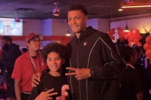 nba直播12月10日讯 火箭前锋小贾巴里·史密斯举办了提前庆祝圣诞的保龄球公益派对。