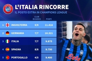 nba直播12月10日讯 德国转会市场统计了各联赛本赛季的欧战积分,并列出榜单,英超居首,德甲、意甲、西甲排名二到四位。