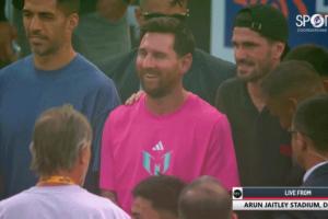 nba直播12月15日讯 梅西印度行最后一站,梅西抵达新德里球场。