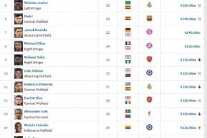 切尔西:帕尔默1.2亿、凯塞多1.1亿