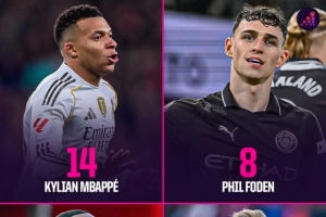 nba直播12月15日讯 Opta统计了2023-2024赛季以来球员在五大联赛的禁区外进球数量,姆巴佩14球最多。