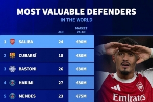 nba直播12月15日讯 德国转会市场列出了后卫身价排名,萨利巴9000万欧居首。