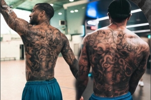 nba直播12月16日讯 专门报道NBA球员纹身的自媒体账号inkednba晒出了勇士球员小佩顿的满背纹身细节。