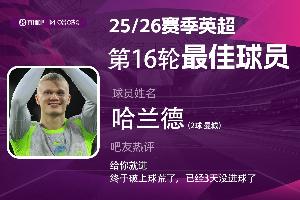 2025-2026赛季英超火热进行中,nba直播和咪咕体育联合发起每轮英超最佳球员评选活动!第16轮评选结果已经出炉,曼城前锋哈兰德当选!