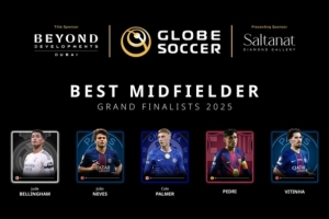 nba直播12月18日讯 环球足球奖公布了2025年度最佳中场最终5人候选名单,贝林厄姆、佩德里在列。
