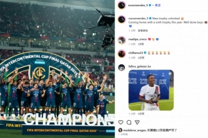 nba直播12月18日讯 巴黎在洲际杯决赛点球击败弗拉门戈,努诺·门德斯首发踢满全场。