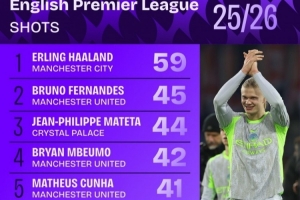 nba直播12月19日讯 数据机构squawka统计了本赛季英超射门和射正次数榜,哈兰德同时领跑,B费射门第二多、姆伯莫射正第二多。