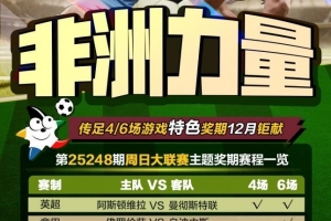第25248期传足4/6场游戏特色奖期已经于2025年12月17日20:00开售,将于2025年12月21日20:30停售,并于12月22日开奖,其中阿斯顿维拉VS曼彻斯特联、赫罗纳VS马德里竞技、比利亚雷亚尔VS巴塞罗那和皇家贝蒂斯VS赫塔费为4场进球游戏竞猜赛事。