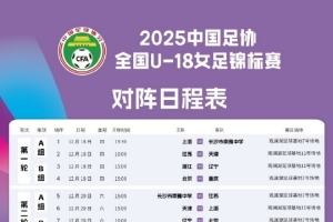 根据2025年中国足球协会全国青少年女足竞赛计划安排,将于2025年12月18日至12月29日在海南省海口市观澜湖足球训练基地举办2025年全国青少年女子足球锦标赛U18组比赛。通过小组单循环比赛,各小组第一、二名参赛队伍进入1-8 名排位赛,各小组第三、四名参赛队伍进入 9-16 名排位赛。