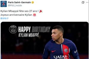 nba直播12月20日讯 今天是法国前锋姆巴佩27岁生日,他的老东家巴黎圣日耳曼在社媒为姆巴佩送上生日祝福。
