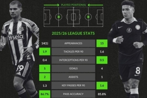nba直播12月20日讯 切尔西即将在英超焦点战客战纽卡,whoscored也对比了两队中场核心本赛季联赛关键数据。