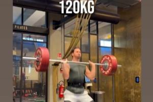 视频中,伊布从100kg的重量开始挺举,一直稳稳举到120kg。