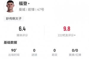 nba直播12月21日讯 曼城在本轮英超3-0完胜西汉姆,福登本场数据如下: