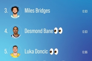 nba直播12月22日讯 数据专家Kirk Goldsberry晒出了本赛季至今平均每次跳投得分最少的球员倒数前五榜单,具体如下: