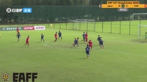 nba直播12月22日讯 U15东亚杯A组第3轮,日本U15对阵韩国U15,第54分钟,日本队再丢一球0-3落后,韩国球员精彩兜射死角!