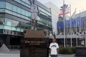 nba直播12月22日讯 奥尼尔大儿子谢里夫·奥尼尔更新社媒,晒出了他在湖人主场外和科比雕像合影的照片。