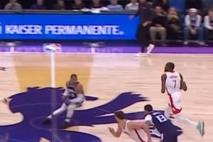 GIF-威少猛然回首吓到杜兰特