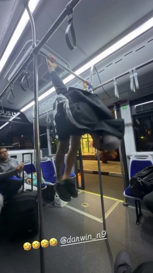 利雅得新月后卫特奥社媒晒视频,努涅斯车上玩单杠