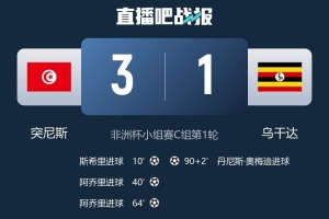 nba直播12月24日讯 非洲杯小组赛首轮比赛,突尼斯3-1击败乌干达。