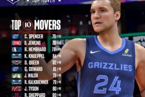 nba直播12月25日讯 今日,NBA 2K官方晒出了本次能力值涨幅Top10,具体如下: