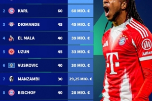 nba直播12月26日讯 德国转会市场盘点了2025年德甲身价涨幅榜,拜仁两将奥利塞、伦纳特·卡尔分别上涨6500万欧和6000万欧位居前二。