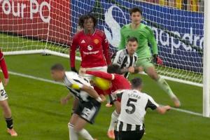 nba直播12月27日讯 曼联vs纽卡第64分钟,利桑德罗·马丁内斯禁区内手球,VAR介入,随后裁判示意比赛继续。