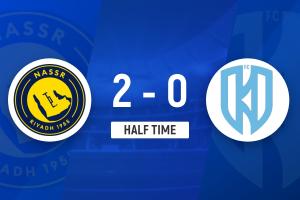 利雅得胜利出场阵容:1-阿奇迪、2-哈纳姆、5-阿姆里、26-伊尼戈·马丁内斯、12-纳瓦夫、11-布罗佐维奇、20-安吉洛、80-韦斯利、79-菲利克斯、21-科曼、7-C罗