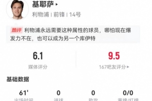 nba直播12月28日讯 利物浦在本轮英超对阵狼队,本赛季首次在联赛首发的小基耶萨本场数据如下: