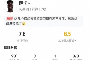 nba直播12月28日讯 阿森纳在本轮英超对阵布莱顿,萨卡本场数据如下: