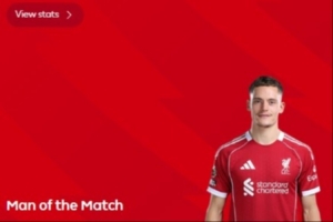 nba直播12月28日讯 2025-26赛季英超联赛第18轮,利物浦2-1战胜狼队,本场首发出战的维尔茨赛后当选全场最佳。