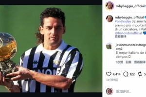 nba直播12月28日讯 意大利足坛名宿巴乔更新社媒动态,回顾32年前的今天赢得金球奖。