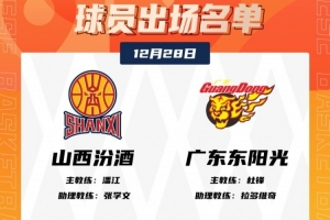 nba直播12月28日讯 CBA常规赛今晚上演晋粤大战,山西主场迎战广东。