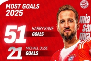 nba直播12月28日讯 2025年即将结束,拜仁俱乐部官方也回顾总结了多项年度数据: