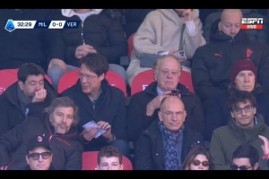 nba直播12月29日讯 慢镜头报道,前尤文图斯主席安德烈亚·阿涅利在圣西罗的看台上观看了AC米兰对阵维罗纳的比赛。