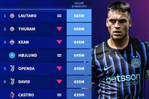 6、戴维(尤文图斯)、卡斯特罗(博洛尼亚)、弗拉霍维奇(尤文图斯)、博尼(国际米兰)、埃斯波西托(国际米兰),3500万欧元