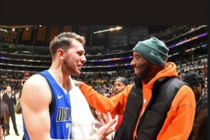 nba直播12月30日讯 6年前的今天,湖人主场108-95击败独行侠,赛后科比和东契奇寒暄合影。